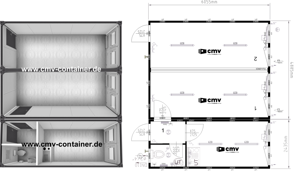 | 3er-Containeranlage 6m | 6.005 x 7.335 x 2.800 mm |