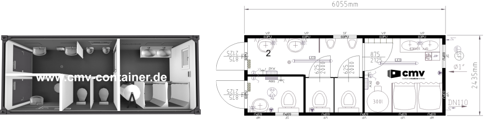 | Sanitärcontainer (2get.) 20 ft. | 6.055 x 2.435 x 2.800 mm |