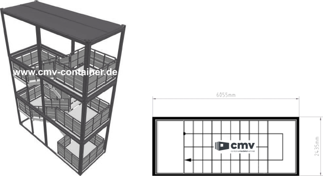 - 1 x Außentreppencontainer Modul B (1. OG mit Dach)